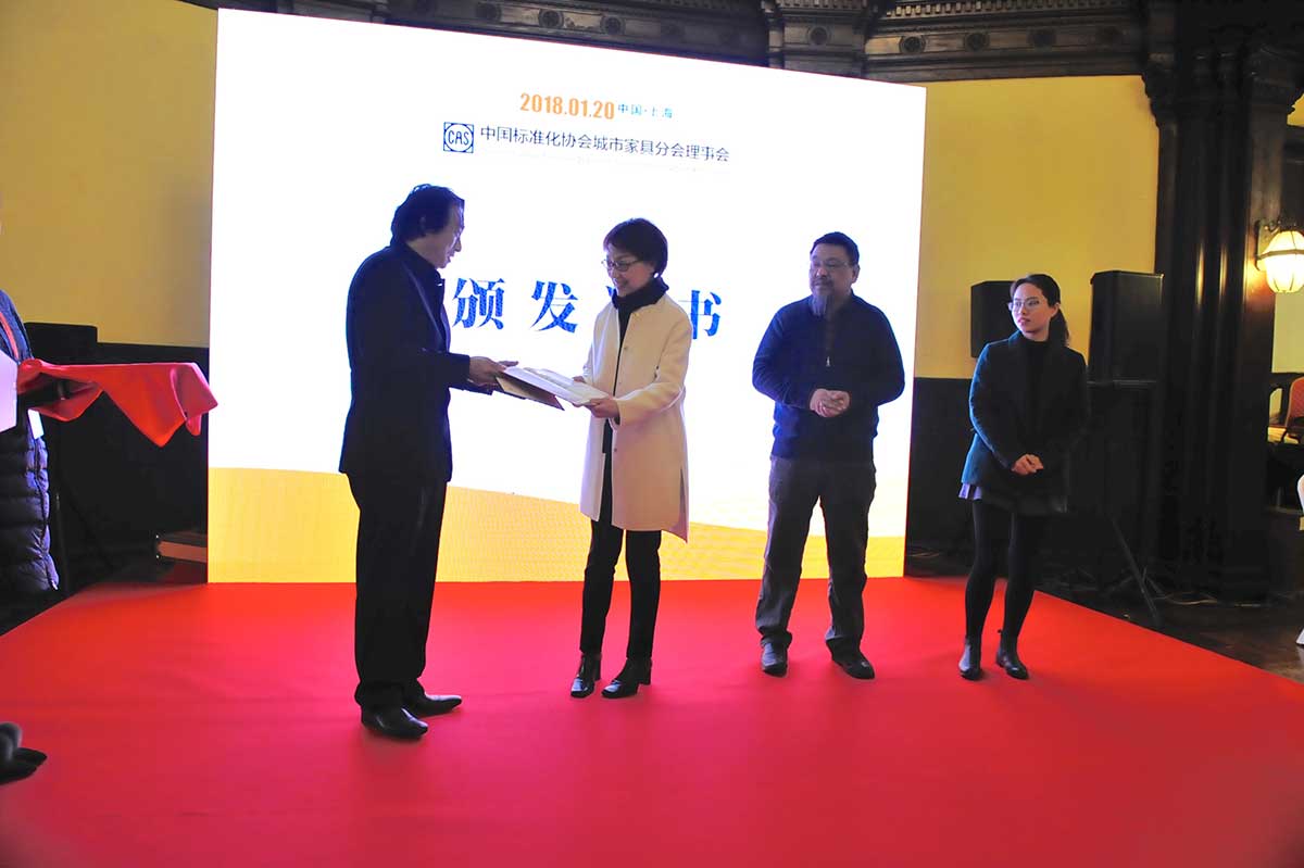 大会上,聘请中国标准化协会纪正昆、东华大学原党委书记朱绍中为中国标准化协会城市家具分会“首席智库专家”,颁发了聘请证书,并宣布了中国标准化协会城市家具分会第一届理事会组成名单。