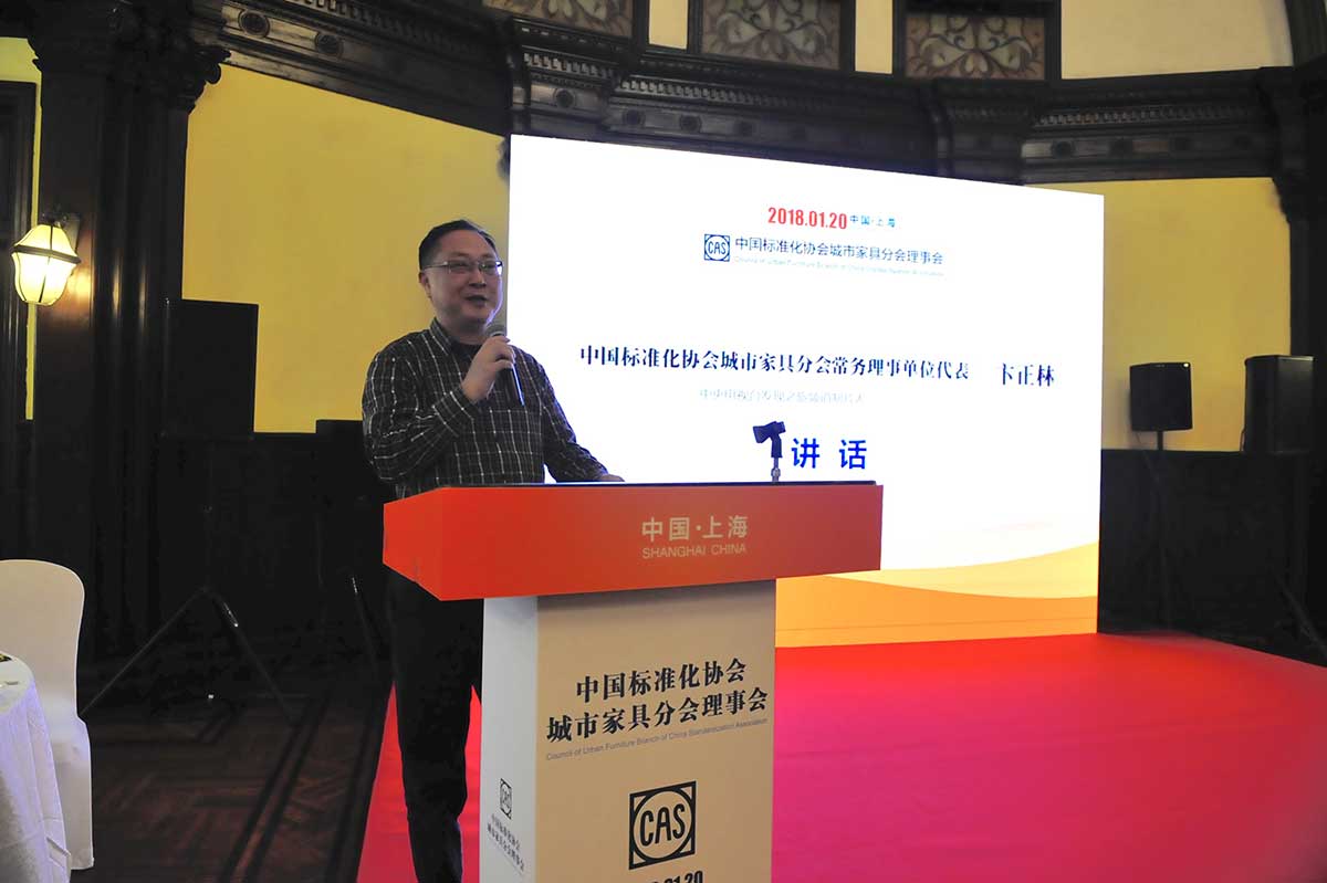 2018年1月20日,中国标准化协会城市家具分会第一届理事会第一次会议在上海召开,中国标准化协会理事长、国家标委会原主任纪正昆、协会副理事长兼秘书长高建忠、东华大学原党委书记朱绍中、上海市质量和标准化研究院院长杨洁明、及来自企业、高校、标准化机构等40多位理事代表出席了会议。会议延续了“倡导五大发展理念、引领中国城市家具标准化”的主题。