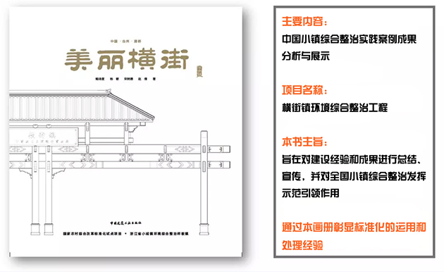 横街镇环境综合整治工程具体涵盖建筑、景观、道路、城市家具、室内等41项改造提升工程,自2016年起开始设计建设,至2018年8月竣工完成。为总结小城镇环境整治工作经验,展示成果和推广标准化理念,东华大学环境艺术设计研究院、中国标准化协会城市家具分会后续编制出版了《美丽横街》,系统完整并图文并茂的介绍横街镇环境整治与乡村振兴成果,解读横街特色,彰显横街历史,挖掘横街文化。